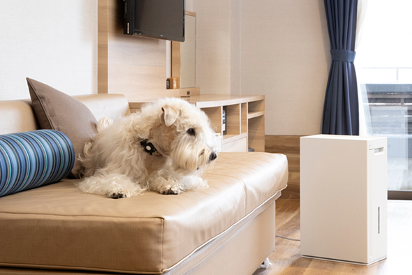 愛犬同伴専用ホテルはどうしてもニオイが気になることがあります。だからこそ、空気環境への配慮が宿泊体験にとって重要だと感じています。不特定多数のお客様がいらっしゃる場所だからこそ、空気を清潔に保つことはとても大切です。「空気環境にまでこだわる」こともおもてなしの一つと考え、これからもお客様であるわんちゃんと飼い主さんをお迎えできたらと思っています。