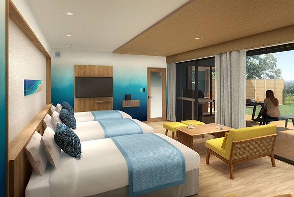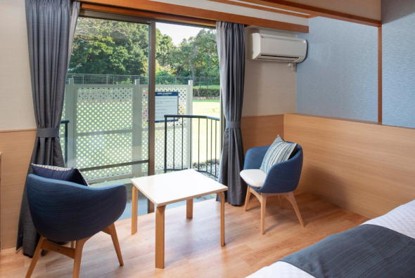 当ホテルのスタンダードタイプのお部屋です。テラスから緑のドッグランと青い相模湾のコントラストをお楽しみいただけます。